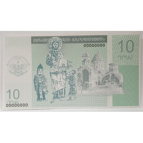 Nagorno-Karabakh 2004 Ten 10 Tolarjev Banknote. Serial: 00000000. Specimen.