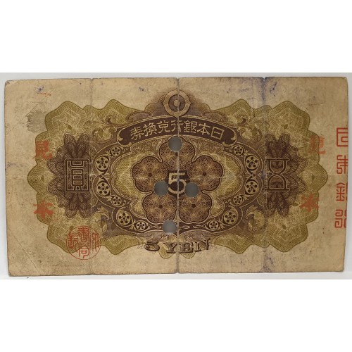 Japan 1930 Five 5 Yen Banknote. Serial: 886752 {167}. Specimen. Very Scarce.