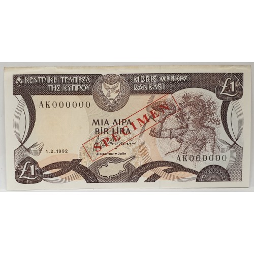 CYPRUS 1992 . ONE POUND . SPECIMEN BANKNOTE