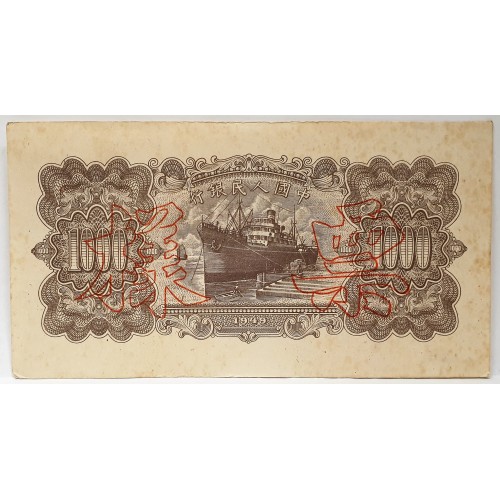 China 1949. One Thousand 1,000 Dollars Banknote. Serial: 0019239. Specimen.