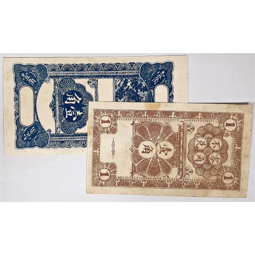 China 1949. One 1 and Ten 10 Cents Banknotes. Specimen. No Serials. Uni-face.