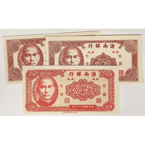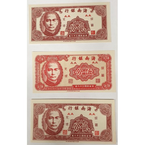 China 19??. Five 5 and 2x Twenty 20 Cents Banknotes. "AA" Serials. Specimen.