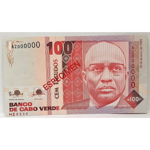 Cape Verde 1989. One Hundred 100 Escudos Banknote. Serial: AZ000000/