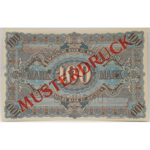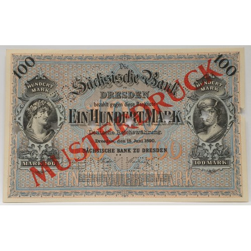 GERMAN 1890 . ONE HUNDRED 100 MARK BANKNOTE . SUPER RARE SPECIMEN . SACHSISCHE BANK