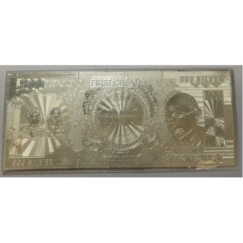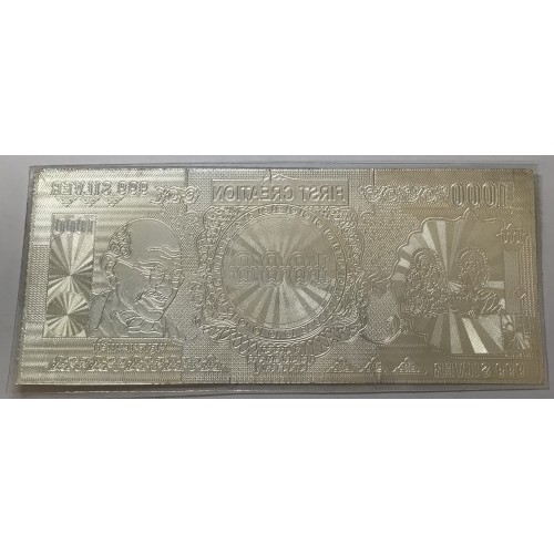 India. One Thousand 1,000 Rupees Banknote. Silver .999. only 10,000 Mintage.