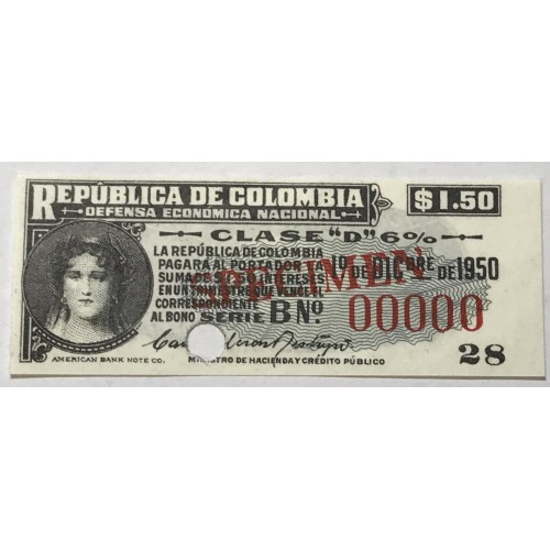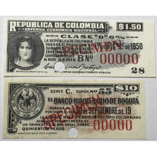 Colombia 1950. 1x One 1 Dollar and Fifty 50 Cents and. 1x Ten 10 Dollars.