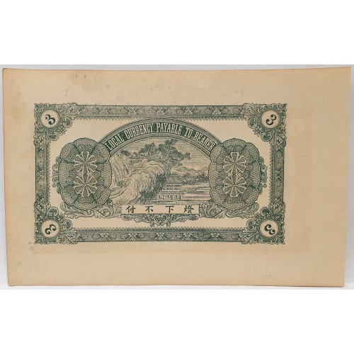 China 1920cir. Three 3 Dollars Banknote. Rare Specimen. No Serials.Cancelled