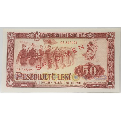 Albania 1964 .Fifty 50 Leke Banknote. Serial: GS345421. Specimen.
