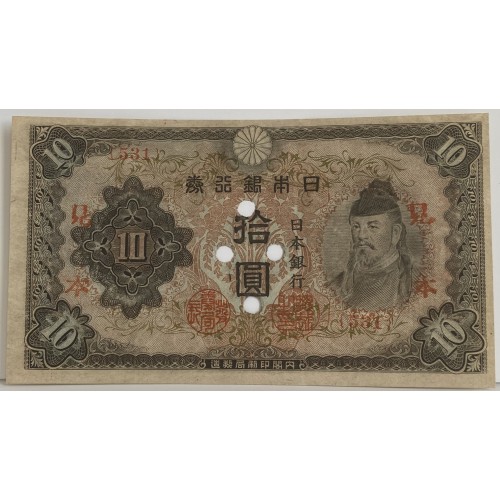 Japan 1945 Ten 10 Yen Banknote. Serial: (531). Specimen. Overprint. Extremely