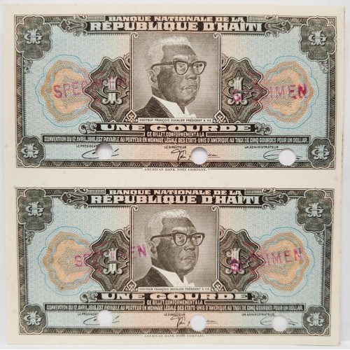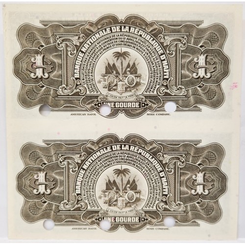 Haiti 1919 One 1 Gourde Banknotes. Specimen. Twin Block Pair. Rare. Choice