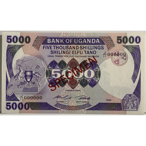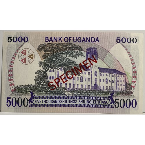UGANDA 1986 . FIVE THOUSAND 5,000 SHILLING BANKNOTE . SPECIMEN