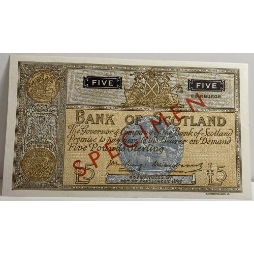 SCOTLAND 1955 . FIVE 5 POUNDS BANKNOTE . SPECIMEN