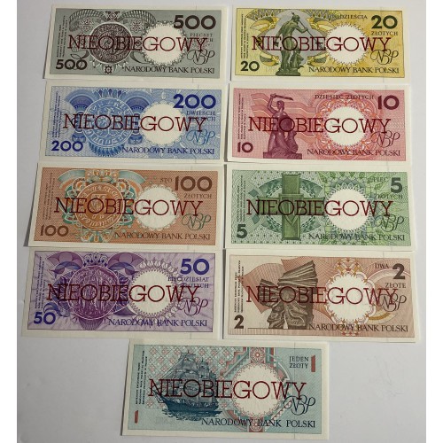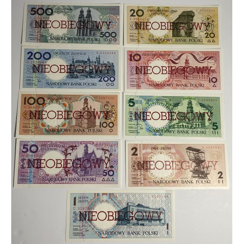POLAND 1990 . ONE 1 - FIVE HUNDRED 500 ZLOTYCH BANKNOTES . SPECIMEN