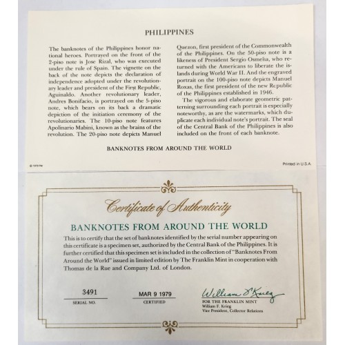 Philippines 1979 Two 2, Five 5, Ten 10, Twenty 20, Fifty 50, One Hunred 100 Piso