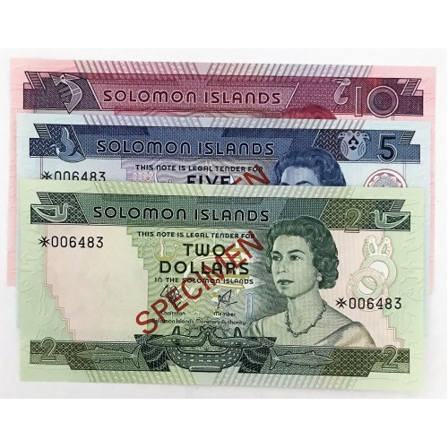 Solomon Islands 1979 Two 2 Five 5 Ten 10 Dollar Banknotes. Serial: 006483.