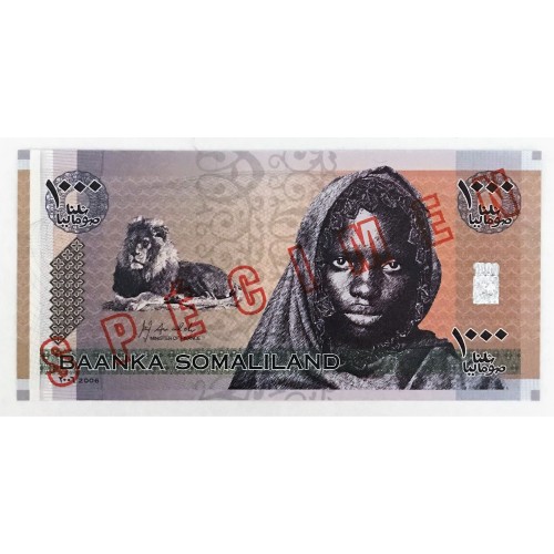 Somaliland 2006 One Thousand1,000 Shillings Banknote. Serial: 00000.