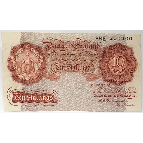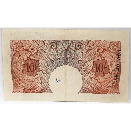 Great Britain UK 1940. Ten 10 Shillings Banknote. Serial: 58E201300.