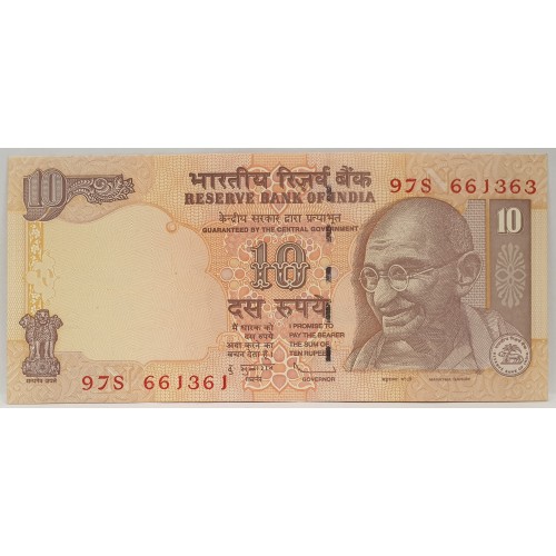 India 1996.Ten 10 Rupees Banknote.Serial: 97S661361/97S661363. Error.