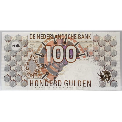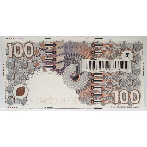 Netherlands 1992 One Hundred 100 Gulden Banknote. Serial: 1147564693.
