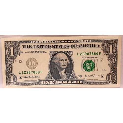 United States of America 2003 One 1 Dollar Banknote. Serial: L22987889F.