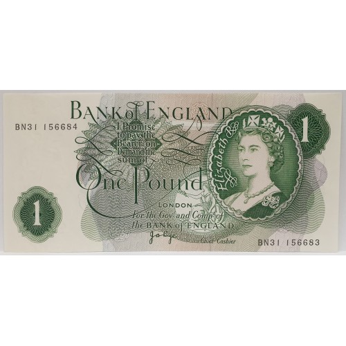 Great Britain UK 1966. One 1 Pound Banknotes.