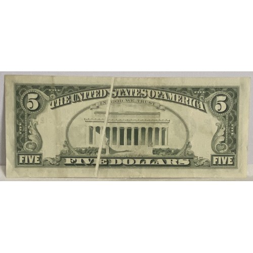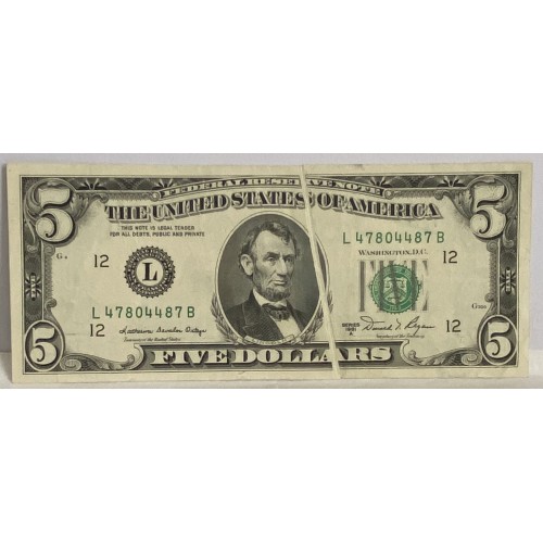 UNITED STATES OF AMERICA 1981 . FIVE 5 DOLLARS BANKNOTE . ERROR . FOLDED CREASE