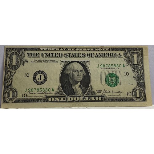 United States of America 1969 One 1 Dollar Banknote. Serial: J98785880A.