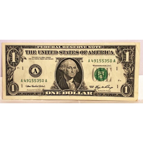 United States of America 2006 One 1 Dollar Banknote. Serial: A49155350A. Error.