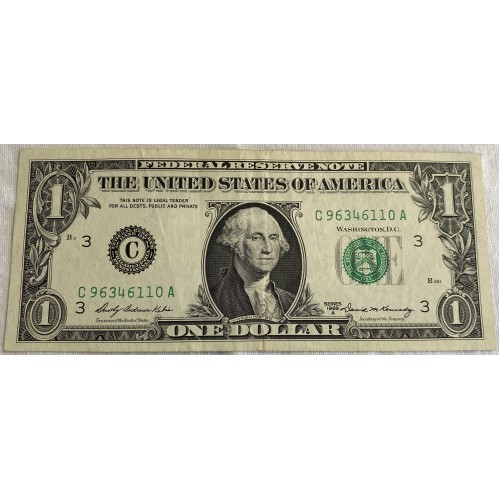United States of America 1969 One 1 Dollar Banknote. Serial: C96346110A.