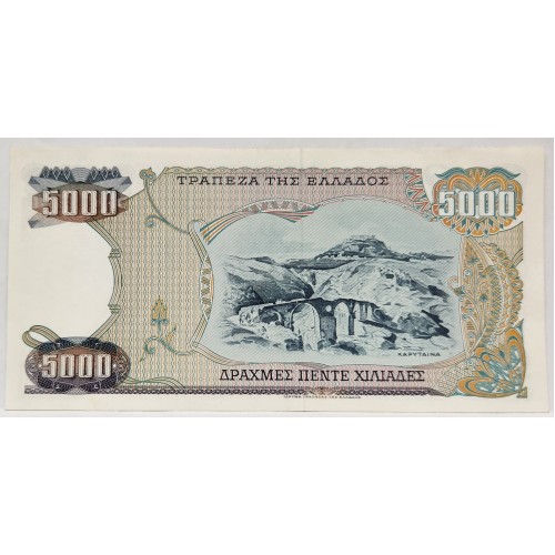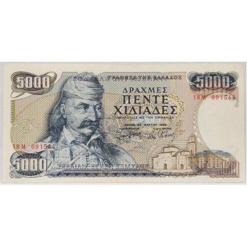 Greece 1984 Five Thousand 5,000 Drachmai Banknote. Serial: 18M 091544.