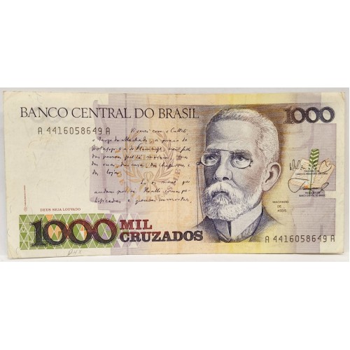 Brazil 1971 One Thousand 1,000 Cruzados Banknote. Serial: A4416058649A.