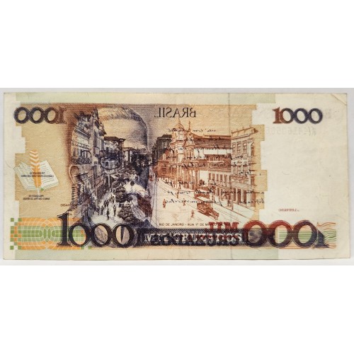 BRAZIL 1971 . ONE THOUSAND 1,000 CRUZADOS BANKNOTE . ERROR . WET INK TRANSFER
