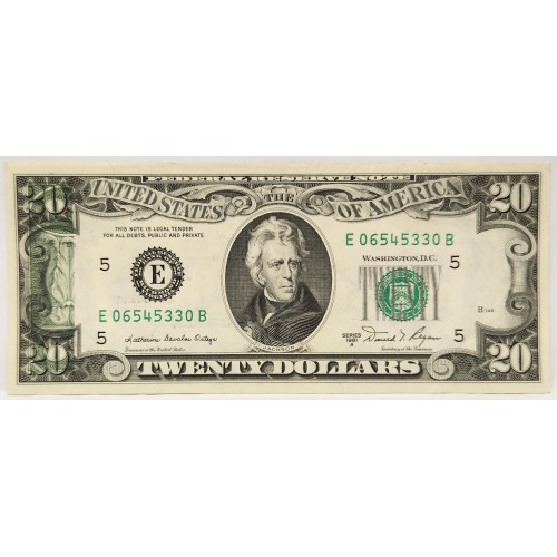United States of America 1991 Twenty 20 Dollars Banknote. Serial: E06545330B.