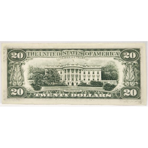 UNITED STATES OF AMERICA 1991 . TWENTY 20 DOLLARS BANKNOTE . ERROR . WET INK TRANSFER IN GREEN