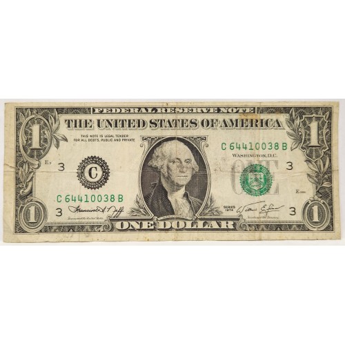 United States of America 1974 One 1 Dollar Banknote. Serial: C64410038B.