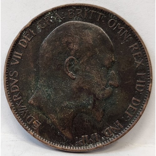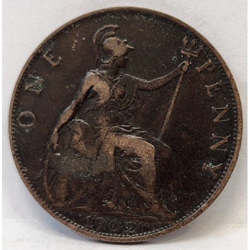 Great Britain UK 1902 One 1 Penny. Variety. Dot between 9 and 0 in Date. Rare.