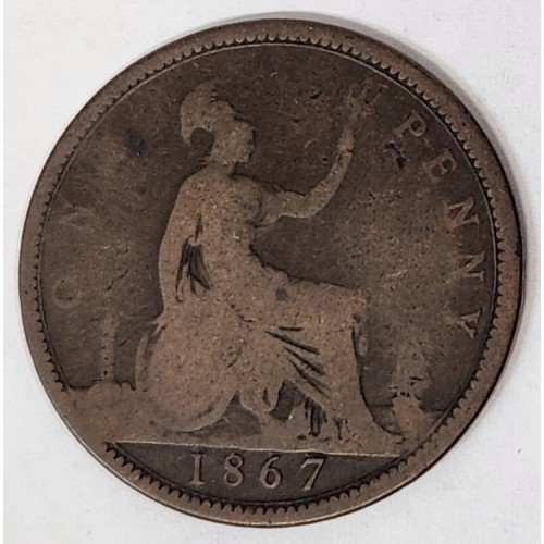 Great Britain UK 1867 One 1 Penny. Scarce. Low Mintage. High Book Value