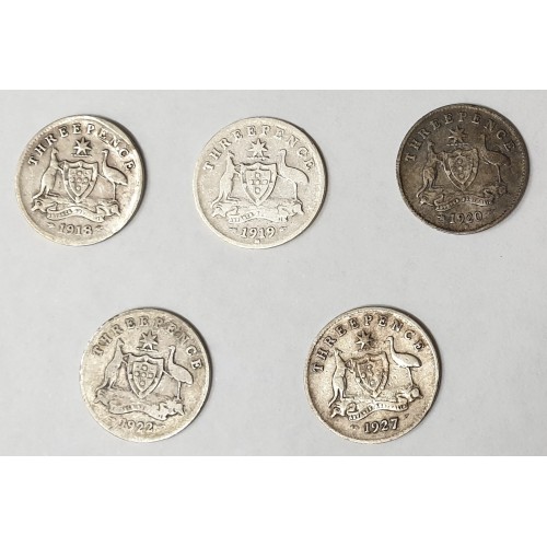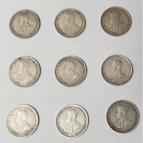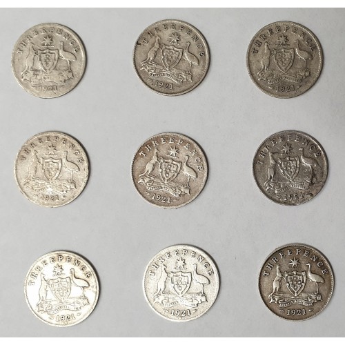 1918 Threepence, 1919 Threepence, 1920 Threepence, 9x 1921 Threepence,