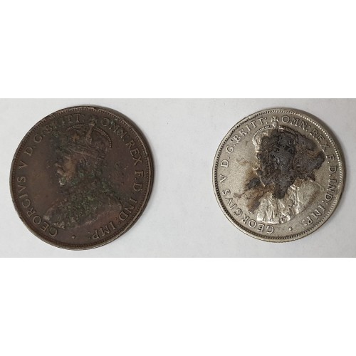 1922 Threepence, 1927 Threepence, 1928 Penny - Broken 8, Nose Dot,