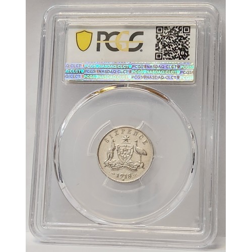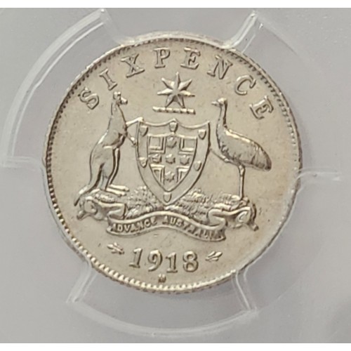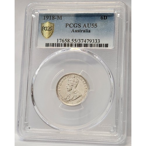 Australia 1918 Sixpence. PCGS AU55. Key Date. Low Mintage. Rare. Lustre.