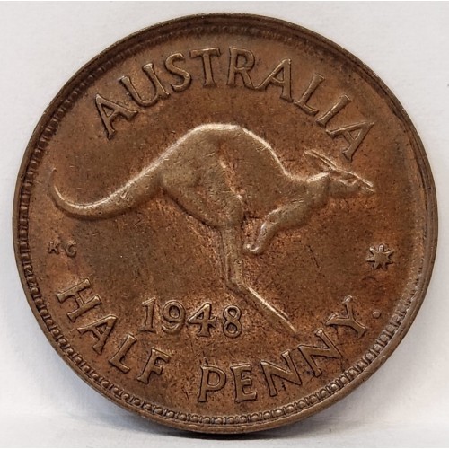 Australia 1948Y. Half 1/2 Penny. Excellent Lustre. Choice Uncirculatedf