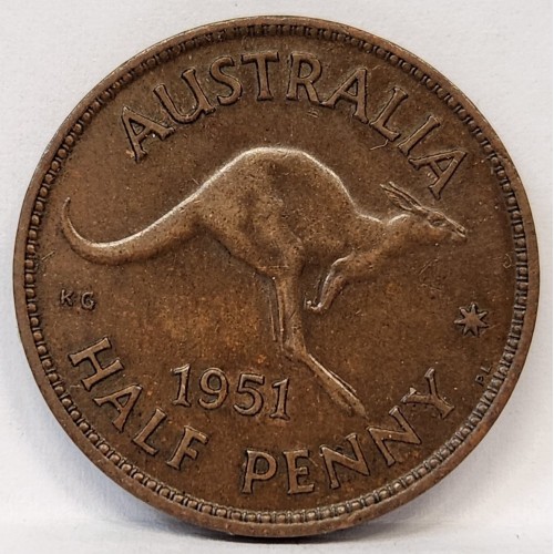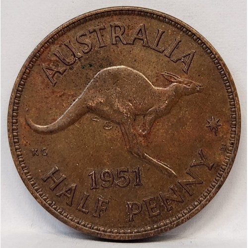 Australia 1951 PL Half 1/2 Penny. Nice Tone. High Grade