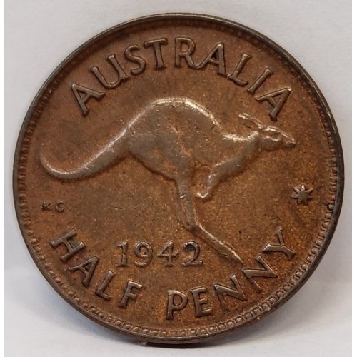 Australia 1942M Half 1/2 Penny. Lustre. Very low Mintage. Choice