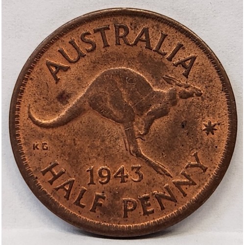Australia 1939 Half 1/2 Penny. Roo and 1943 Half 1/2 Penny. Key Date.
