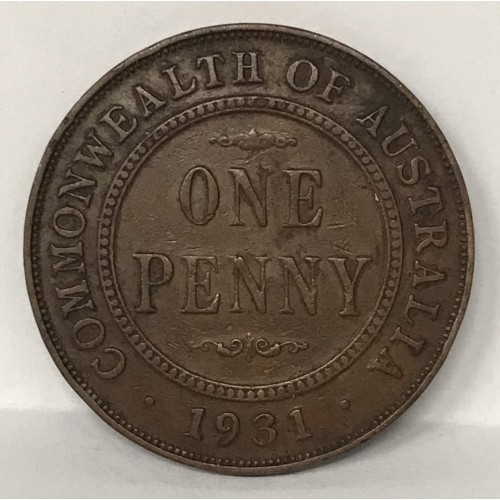 Australia 1931 One 1 Penny. Indian Die. Variety. 6 Pearls. Very Scarce Type