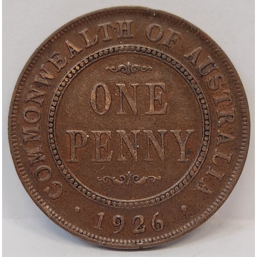 Australia 1926 One 1 Penny. 8 Pearls. Excellent Condition. Low Mintage.