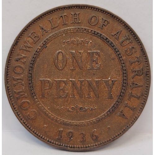 Australia 1936 One 1 Penny. Normal Bag Marks. High Grade. Some Lustre.