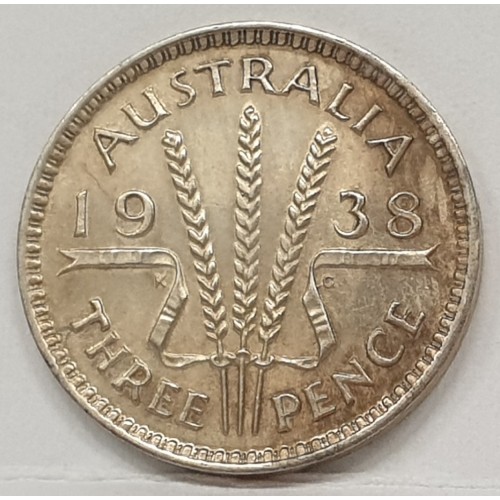 Australia 1938 Threepence. Very Scarce in this Grade. gExtra Fine