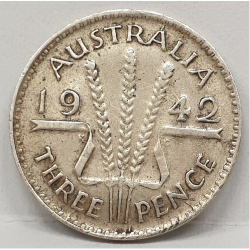 Australia 1942M Threepence. Melbourne. Key Date. gVery Fine