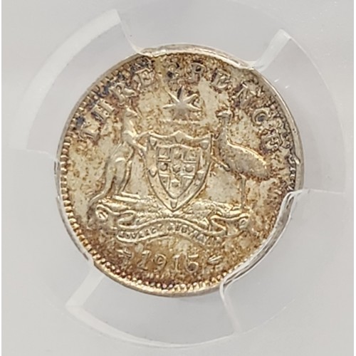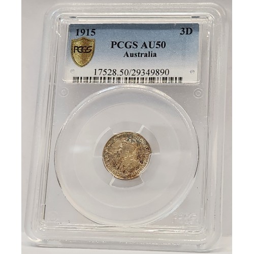 Australia 1915 Threepence. PCGS AU50. Key Date. Very Scarce. aUncirculated.